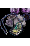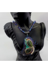 Artisan bead embroidery Abstract butterfly pendant featuring labradorite gemstones various Czech beads, Japanese seed beads and it dangles from a faceted Quartz 24" necklace with lobster clasp closure.
