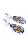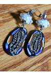 Stunning pair of artisan collaborative earrings. I paired Artisan clay art wings with artisan gorgeous lampwork beads topped them with Swarovski bicones and silver lever-back ear hooks. MEASURE 3"