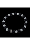 SIZE 7.5 stretch selenite and matte/polish onyx agate bracelet, accented with silver pave crystal bead.