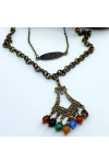BEAUTIFUL 2 layer necklace featuring mix natural gemstones, antique brass chain, angel charm and mixed gemstone pendant. Inner layer 22" outer 24" comes with extender chain lobster clasp closure. .