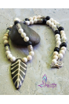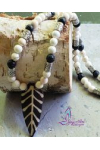This wonderful carved bone arrow necklace features 8mm howlite and larva stones silver plated barrels and lobster clasp. Measure 20" with extender piece