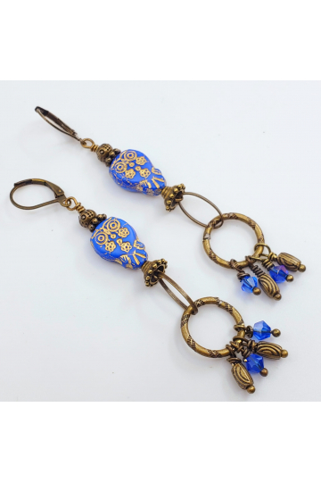 Verdigris brass charms paired with Czech bicones.