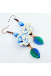 Artisan Polymer clay flowers pair with Czech beads, Measure 3.11"