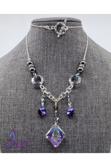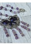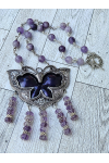 Gorgeous matte finished amethyst, large purple inlay butterfly focal with carved amethyst dangles. Beautiful hummingbird toggle clasp closure. Measure 22"
