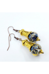 Artisan lampwork toppednwith antique gold bead caps. MEASURE 2"