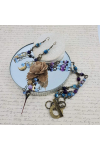 Gorgeous artisan deco cut agate and apatite gemstones paired with Czech firepolished beads, brass moon charms, artisan lampwork teardrop and artisan burlap rose pendant. Necklace measures 20" 4" longer with pendant. Toggle clasp closure Earrings measure 3.5"