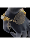 Stunning lampwork and brass focal bracelet. This lovely measures 8" and easily Resizable. Highlights with gold and brass chain, lobster clasp front closure.