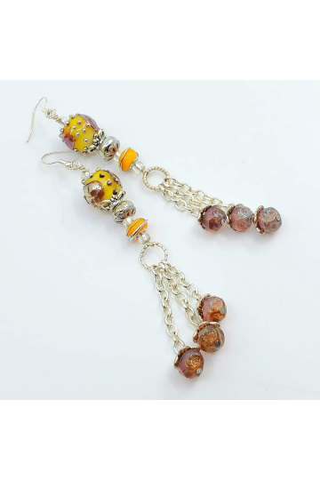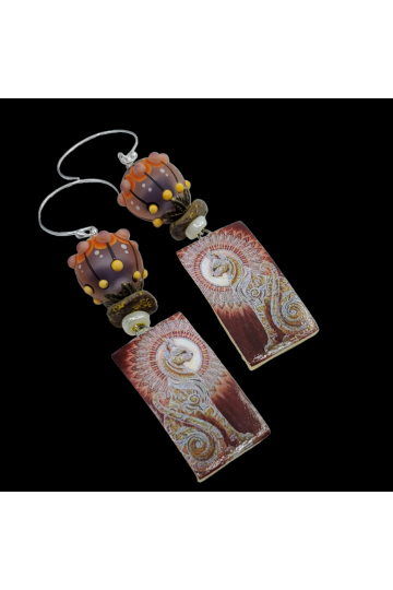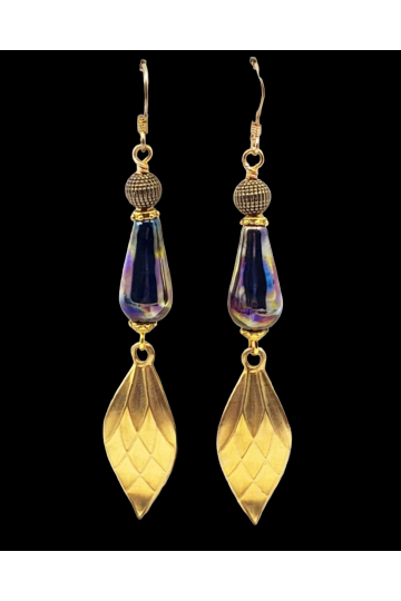 THESE gorgeous fused Dichroic glass triangle are artisan made, paired with o-bead and Swarovski bicone ear hooks. MEASURE 2.68" wt.4 grams