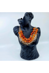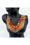 Stunning Carnelian Bib necklace, designs with multi layers of rose gold tone chain paired with wire wrapped Carnelian nuggets. Measure 18" with 3" extender chain. Wt. 150 grams