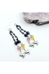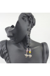 BEAUTIFUL antique pewter flying doves dangle from Czech table-cut beaded chain, and Czech belle flowers. MEASURE 3.44"