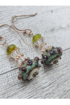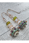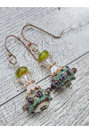Artisan lampwork beads, paired with rose gold plated baguette crystal spacers, artisan lampwork spacers and rose gold plated french ear hooks.