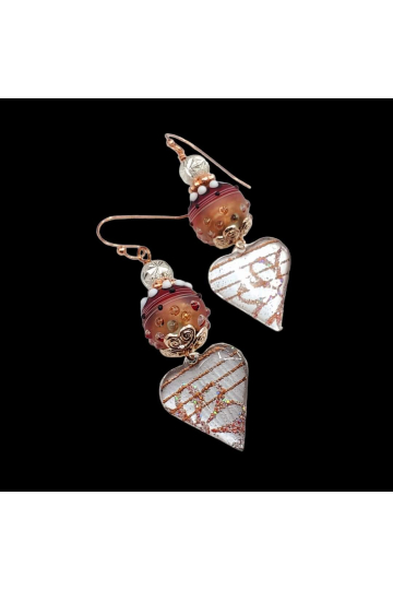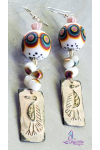 Dynamic Matte finished artisan lampwork by, paired artisan pantina artisan focal, and sterling silver ear hooks. Measure 3 1/4" from sterling silver ear hooks.