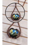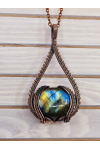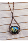 Stunning multiflash labradorite gemstone meticulously wrapped in copper that has been pantina'd. Artisan wire wrappwd by yours truely. Comes with 20" copper lobster clasp chain. Pendant measure 3" × 1.5"