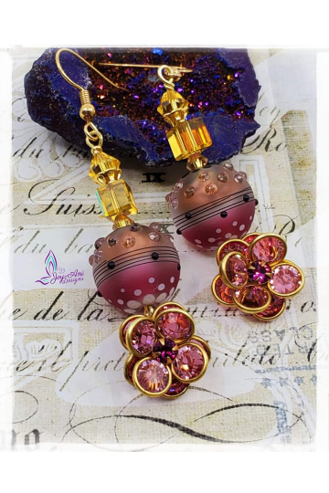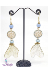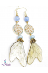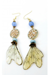 These Fabulous lightweight beauties showcase artisan butterfly wings, paired with tiny artisan lampwork spacers, baguette pave focals, agate gemstone beads and gold plated ear hooks. Measure 4"