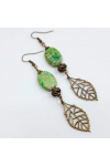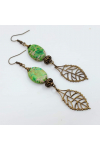 Lovely sea sediment Jasper gemstones paired with antiqued brass filigree leaf charms. Measure 3.39"