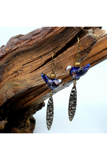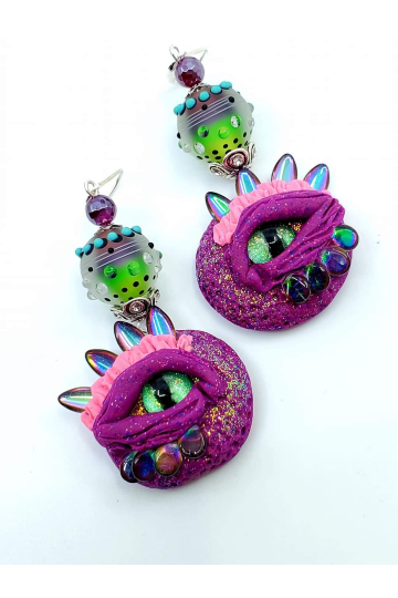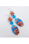 Fabulous find in these artisan pair earrings. Artisan porcelain decoupage, artisan bubble lampwork beads. cultivated sea glass, Bali silver findings and sterling silver v-hook ear wires. Measure 3.10" wt. 16 grams total.