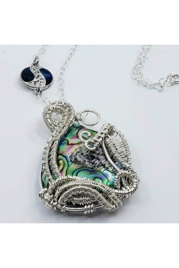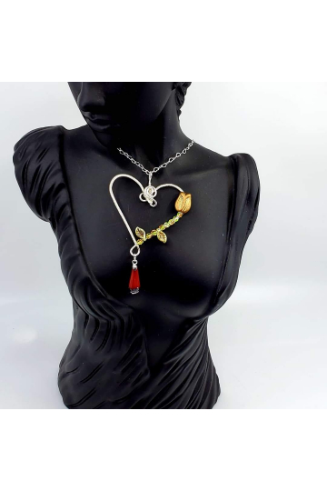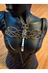 Stunning artisan wire art dragonfly pendant, designed with pantina copper wire, tiger'seye gemstone labradorite gemstone and blue lace agates. Measures. 3.75" x 4.53" wide. Comes with free ball chain. Necklace.