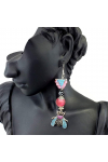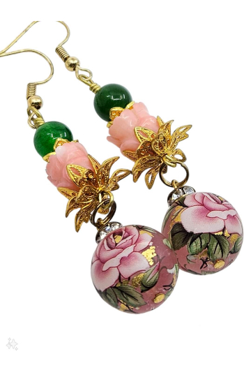 Gorgeous pave crystal fly charms paired with matte finish glowing artisan lampwork, paired my very own bead woven silver textured triangles, flower accented pearls, sterling silver ear hooks, measure 3.30"