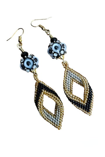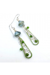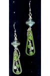 These wonderful elliptical earrings have lots of bodice. They are cascades of faceted jade gemstones, enamel charms and topped with brushed table cute bicones and surgical steel ear hooks. MEASURE 2.91"