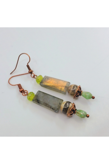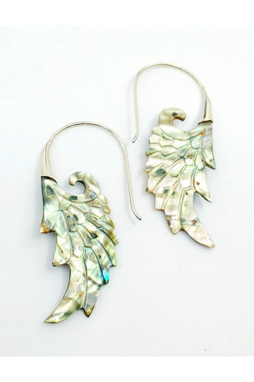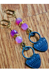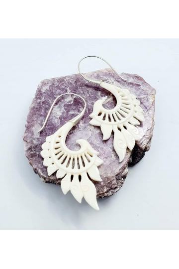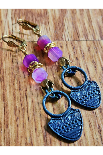 Stunning art deco carved agate paired with pantina arrows, Czech beads and brass findings. MEASURE w. 2.94"