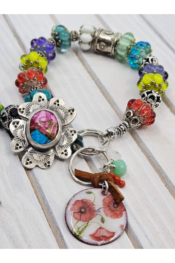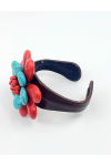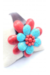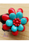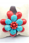 This is a statement piece for ya. This 2.4 Flower is beautifully crafted with red and Turquoise Howlite, and an adjustable genuine leather cuff. One size fits most. "OOAK"