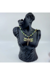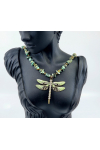 Beautiful turqouse chipped necklace accented with antique brass and adorned with an enamel painted dragon fly charm. ADJUSTABLE slide clasp closure. Wear short at 20" extends to 24"
