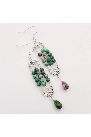 These STUNNING lovelies include jasper embellished ear hooks, Chrysoprase barrels copper accents with painted and textured and copper movable charms. Measure 3.06"