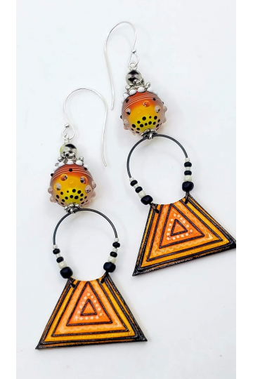 Gorgeous Goddess artisan lampwork beads, paired with enamel face charms, sterling silver ear hooks. Measure 3.5"