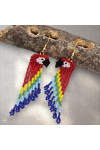 GORGEOUS bead woven Scarlet Macaw Partot tassel earrings. Light weight and flirty. Measure.3"