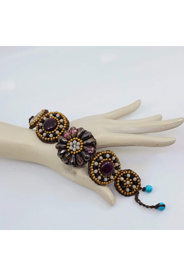BEAD woven macramé bracelet.. BEAUTIFUL mix of brass , gemstones and Czech beads all rolled into this fabulous adjustable bracelet.