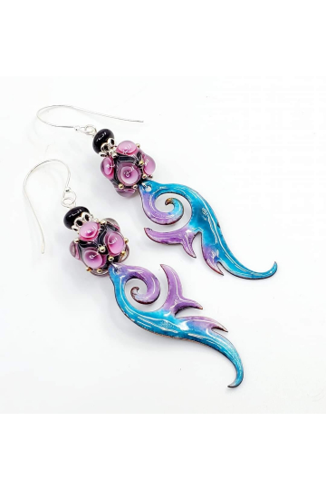 Beautiful collision of artisan lampwork and artisan clay charms, with millefiori earrings with sterling sliver ear wires and . MEASURE 3.77" wt.10 grams