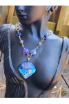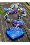 Ravishing sterling silver artisan lampwork and dichroic glass necklace. Features lampwork by Monika Betz , dichroic glass for all that I transformed into this beautiful pendant, sterling Bali bead and twisted jump rings. Necklace measures 24" with extender chain. Pendant adds additional 2"