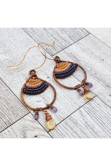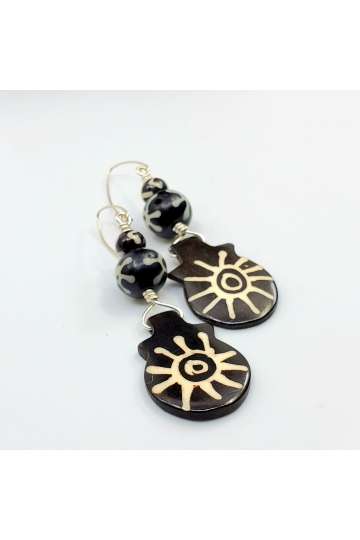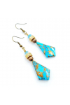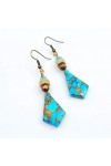 Gorgeous artisan combines genuine turquoise, and Bronzonite kite carved gemstones, paired with pave beads caps, topped with melon Czech beads accented in copper. MEASURE 2.57"
