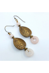 GORGEOUS rose Quartz beautiful paired with resin Antiqued brass beads. Light fun and gorgeous. Measure 3.11"