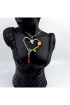 Dynamic hand-made wire wrapped heart pendant. I designed with anti-tarnish silver wire, Czech tulip bead, leaves and fire-polish rounds adorned with a Czech table-cut tear drop. Pendant measures 2.39" x 3.54" comes with silver plated heart link 18" chain. Original OOAK