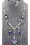 These wonderful necklace is all sterling silver and Swarovski crystals. It features a 26mm Rhombus pendant, 15mm cosmic rings, 12mm mini pear crystals and bicones. twisted silver rings, Figaro chain and hammered metal toggle clasp Necklace measures 22" pendant 2"