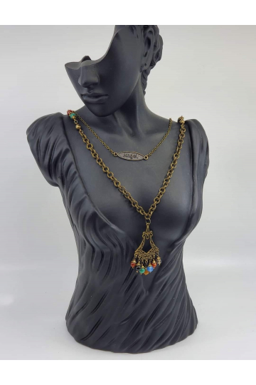 24" jasper chip necklace with an copper wire intertwined Carnelian stone focal. Copper closure with extender chain.