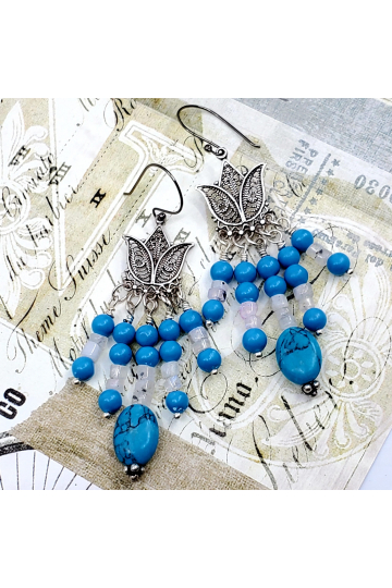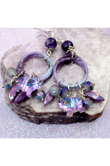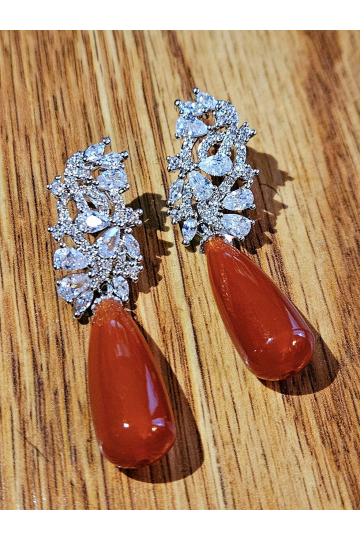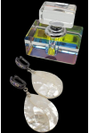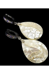 Stunning shell earrings adorned with crystal leverback ear hooks. Measure "2.26