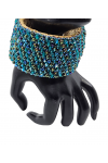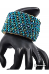 This stunning delight is not for the faint at heart. It is a bold statement of beadwoven fun. Designed uaing a netting technique using japanese seed beads and Czech firepolish beads. Adjustable cuff.