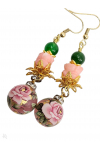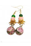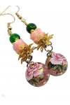 Ravishing Japanese Tenishi beads paired with carved Coral and topped with jade gemstones. MEASURE 2.92"