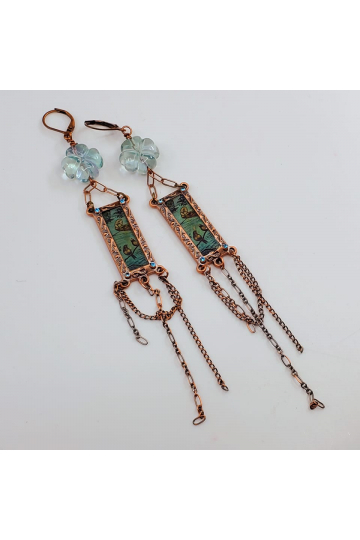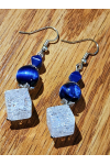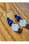 Gorgeous AAA crackle Quartz paired with blue tigereye gemstones, topped with Czech bicones. Measure 2.08"