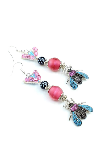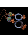 BOHEMIAN Beauties featuring artisan organic enamel rings, artisan made copper wire art and swirl rings, topped with raku beads. Measure 3.32"