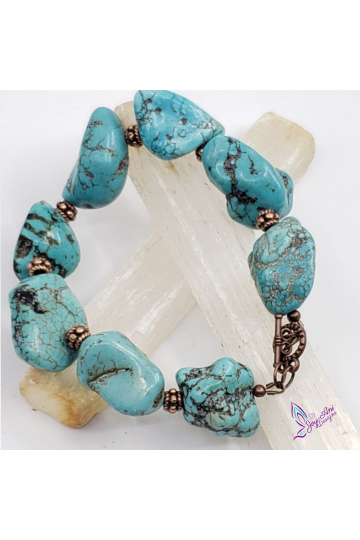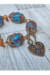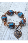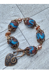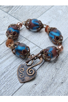 Beutiful chunky lampwork bead bracelet adored with artisan copper toggle clasp closure. Natural filigree bead caps, copper spacer bead and brushed wavy diac spacers. Fit 7" wrist.