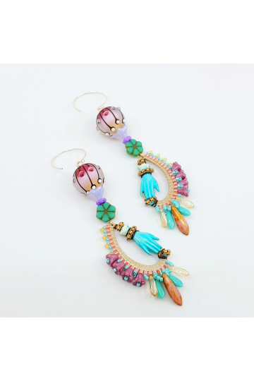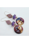 ARTISAN clay faces. Paired with artisan lampwork, topped with Czech table cut beads, topped with sterling silver ear hooks.