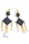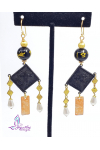 Vintage oriental tassels with gold and pearl tear drops, artisan hand painted metal components by Jo Pohl, dragon carved agates, and gold stardust and 14kt gold filled beads and 14kt gold plated sterling silver ear hooks. 3 3/4"
