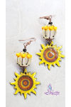 Gorgeous matte finished artisan lampwork paired with tourch painted enamel sun charms with copper accents.
