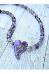 Artisan lampwork hearts paired with AAA amethyst, ametrine and sterling silver laser carved beads, sterling heart shaped toggle clasp closure. Measure 20".