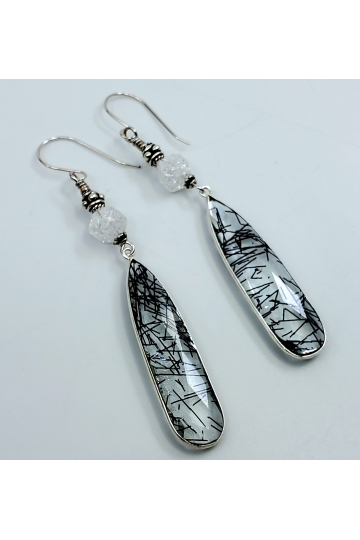 "THINK happy be happy tassel charm earrings topped with onyx agate beads.