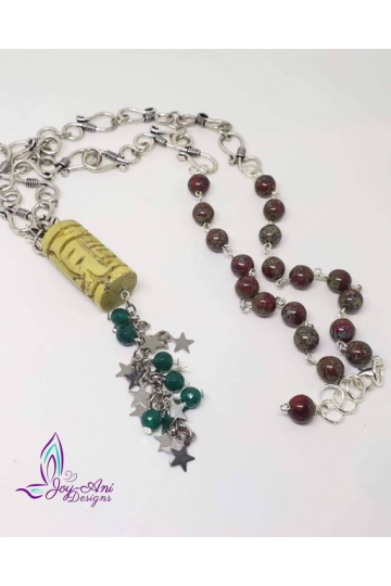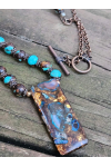Genuine Turqouise necklace paired with a Peitersite focal this necklace ia accented with Czech flowers. Toggle clasp closure. MEASURE 24" additional 2" pendant. LENGTH can be adjusted