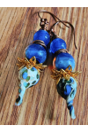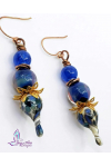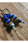 Perfect blend of blues and copper. Perfect pairing of artisan lampwork head pins, paired with artisan graduates lampwork beads copper and rose gold ear hooks. Measure 2 3/4